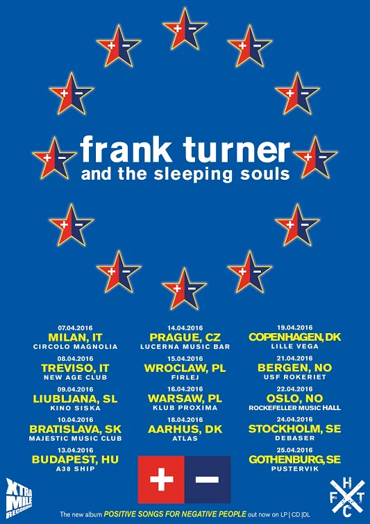 The folk rock artist, Frank Turner, has announced a European tour, for April. The tour will be supporting his album, Positive Songs for Negative People. You can check out dates, details and poster, after the break.