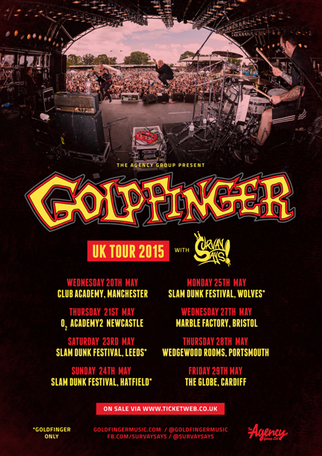 The punk rock band, Goldfinger, have announced a UK tour with Survay Says!, for May. You can check out the dates, details and poster, after the break.