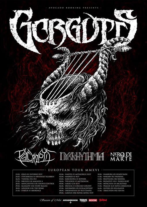 The death metal band, Gorguts, has announced a European tour, for March and April. Psycroptic, Dysrhythmia and Nero Di Marte will be on the tour, as support. You can check out dates, details, and poster, after the break.