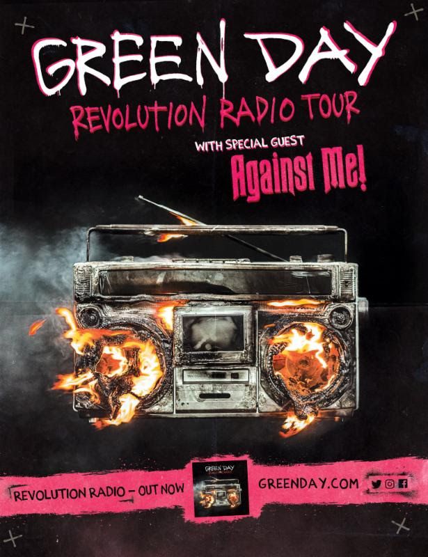 The rock band, Green Day, has announced a North American tour, called the “Revolution Radio Tour,” for March and April. Against Me! will be joining the tour, as support. You can check out the dates, details and poster, after the break.