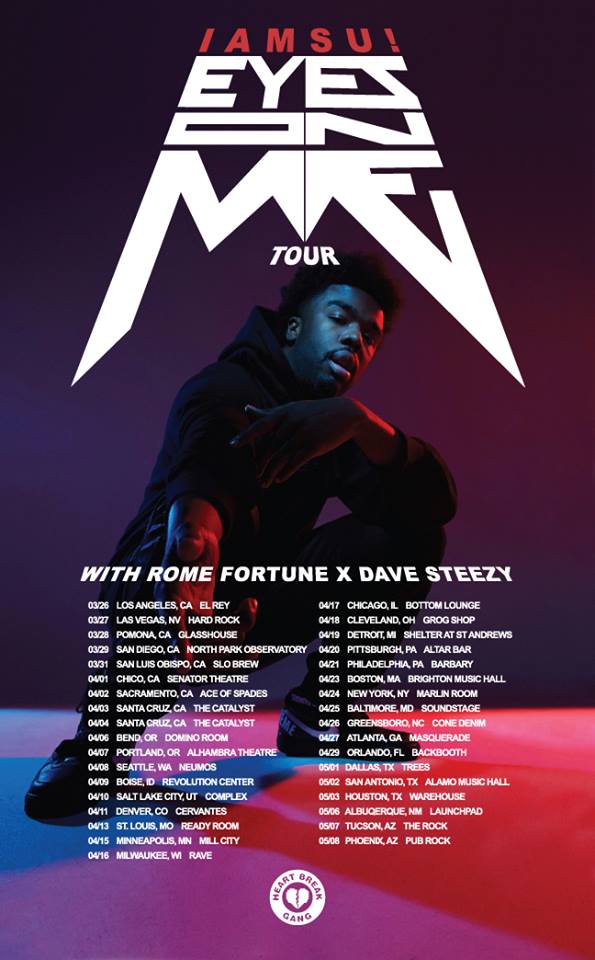 The hip hop artist, Iamsu, has announced a headlining U.S. tour, called the “Eyes On Me Tour,” for this spring. Rome Fortune and Dave Steezy will be joining the tour, as support. You can check out the dates, details and poster, after the break.
