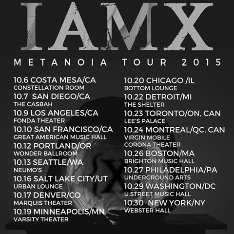 The alternative rock artist, IAMX, has announced a North American tour, called the “Metanoia Tour 2015,” for this October. He will be touring in support of his upcoming album, Metanoia. You can check out the dates, details and poster, after the break.