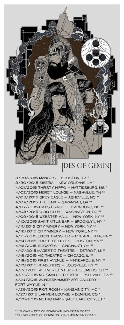 The metal band, Ides of Gemini, have announced a spring U.S. tour, for March and April. The tour will be with Mountain Goats. You can check out the dates, details and poster, after the break.