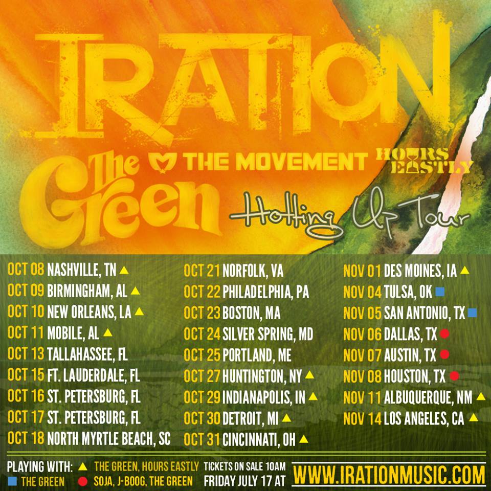 The reggae rock band, Iration, have announced the “Hotting Up Tour,” in the United States, to support their new album, Hotting Up. The Green will be supporting the entire tour, while Hours Eastly and The Movement will be on select dates. The…