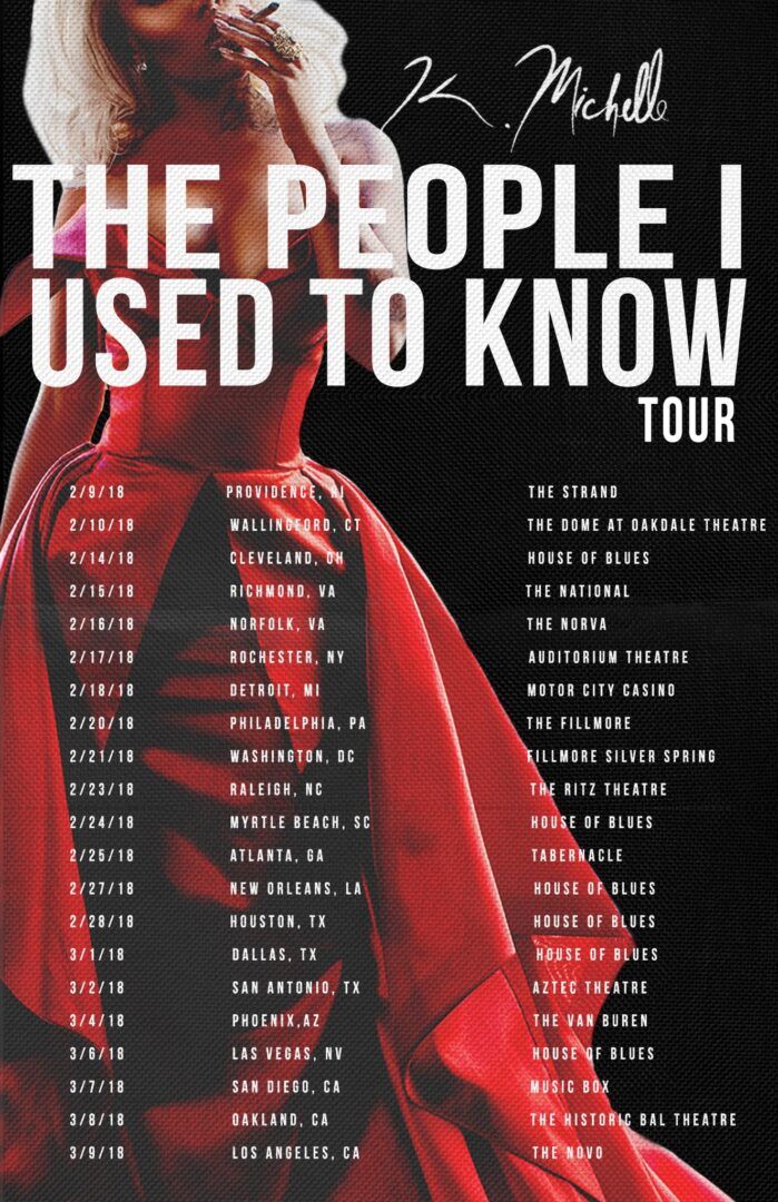 The R&B artist, K. Michelle, has announced a U.S. tour, called “The People I Used to Know Tour”, for February and March. She is touring in support of her latest album, KIMBERLY: The People I Used to Know.