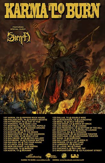 The hard rock band, Karma To Burn, has announced an extensive North American tour, for this winter. They will be touring in support of their upcoming album, Arch Stanton. Sierra will be joining the tour as the special guest. You can check out the dates, details and poster, after the break.