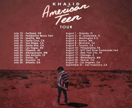 The singer-songwriter, Khalid, has announced a North American tour, called the”American Teen Tour”, for July through September. This tour is in support of his debut album.