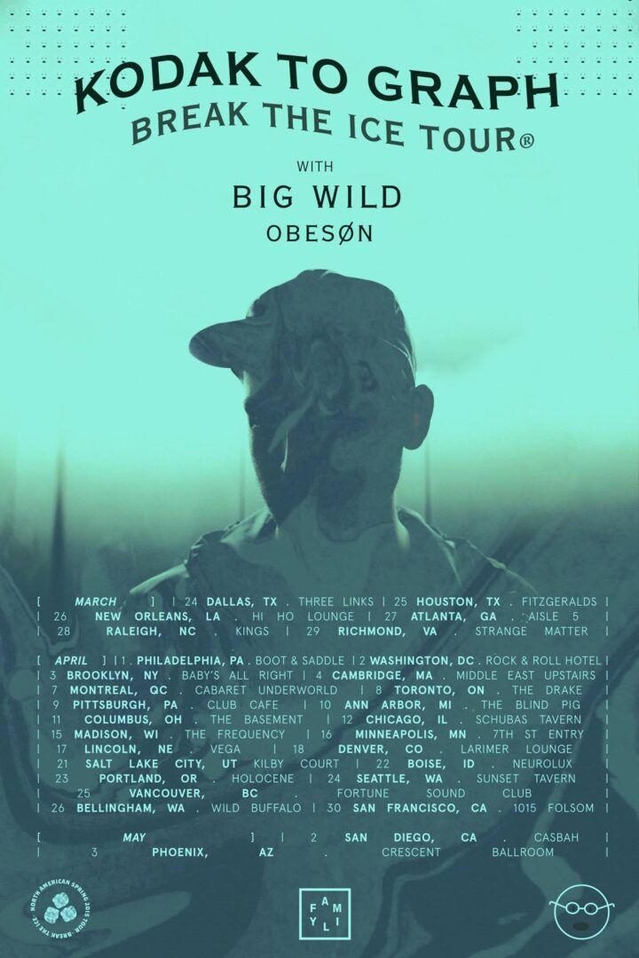 The electronic musician, Kodak To Graph, has announced the “Break The Ice Tour,” with dates in March, April and May. He will be supported by Big Wild and OBESØN, on this tour. You can check out the dates, details and poster, after the break.