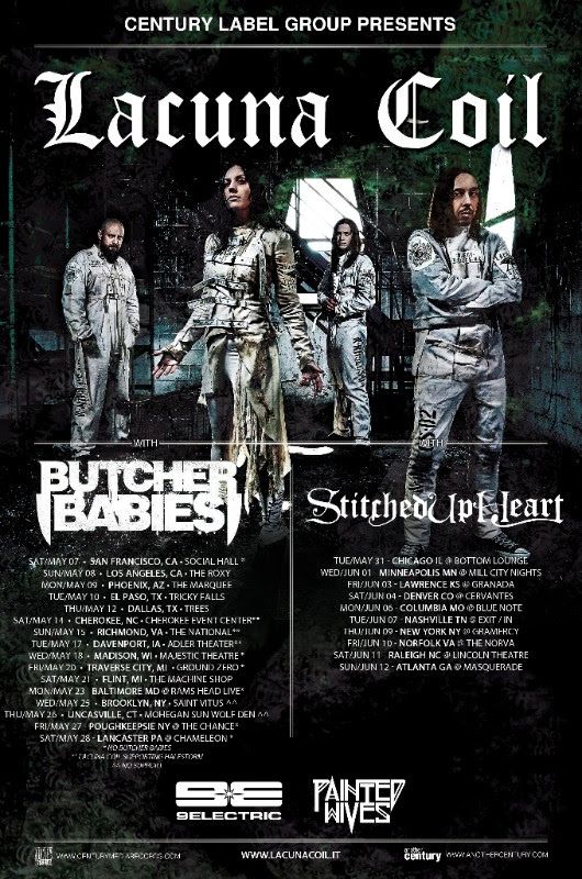 The metal band, Lacuna Coil, have announced the second leg of their North American tour, called the “Delirium Tour.” Stitched Up Heart, 9ELECTRIC and Painted Wives will be joining the tour, as support. You can check out the dates, details and poster, after the break.