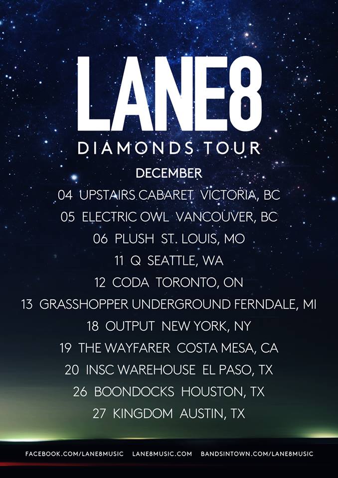 The house music artist, Lane 8, has announced a North American tour, called the “Diamonds Tour,” for this December. The tour will start on December 4 in Victoria, BC and comes to an end on December 27 in Austin, TX. You can check out the dates, details and poster, after the break.