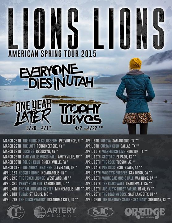 The post hardcore band, Lions Lions, have announced a U.S. spring headlining tour, with dates in March and April. They will be supported by Everyone Dies In Utah, One Year Later and Trophy Wives. You can check out the dates, details and poster, after the break.