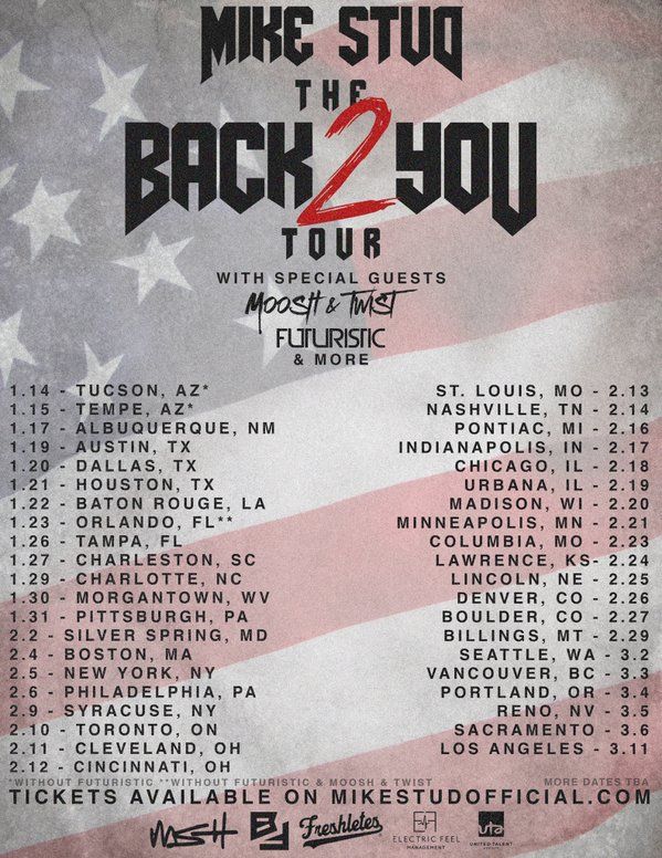 The hip-hop artist, Mike Stud, has announced a North American tour, called “The Back 2 You Tour,” for January through March. He will be touring in support of his latest release, This Isn’t The Album. Moosh & Twist and Futuristic will…