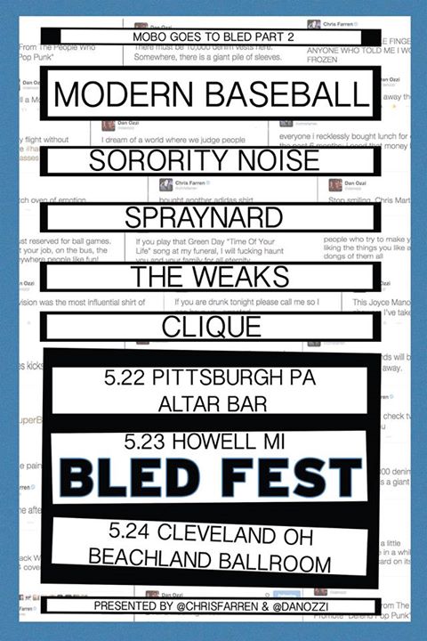The punk rock band, Modern Baseball, has announced a short U.S. tour, for this spring. The tour dates revolve around the band’s performance at Bled Fest. Sorority Noise, Spraynard, The Weaks and Clique will be joining the tour, as support. You can check out the dates, details and poster, after the break.