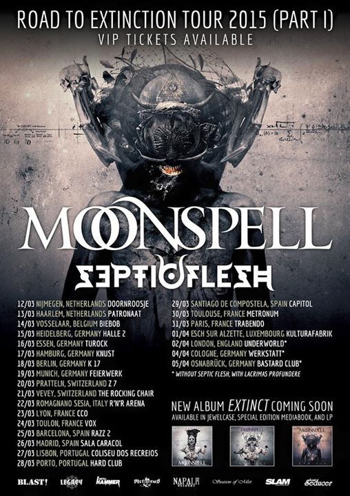 The metal band, Moonspell, have announced that they will be heading to Europe on the “Road To Extinction Tour,” in the spring. Septicflesh will be joining the tour, as support. You can check out the dates, details and poster, after…