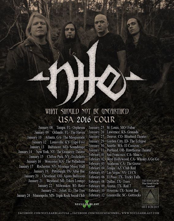 Nile Announces “What Should Not Be Unearthed USA 2016 Tour”