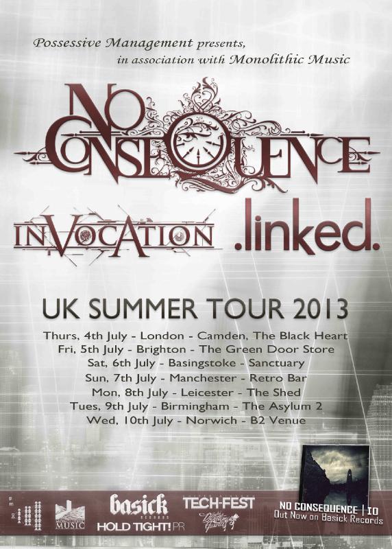 No Consequence announces a UK headline tour for July with support from Invocation and Linked. You can check out the dates and tour poster, after the break.