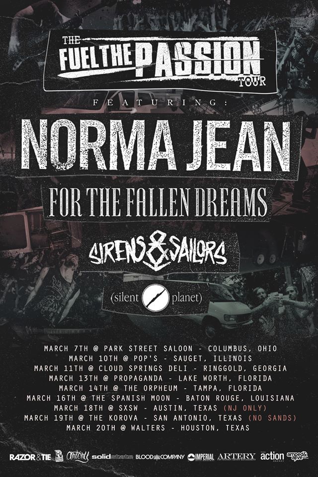 The rock band, Norma Jean, has announced a U.S. tour, called “The Fuel The Passion Tour,” for this March. For the Fallen Dreams, Sirens and Sailors and Silent Planet will be joining the tour, as support. You can check out the dates, details and poster, after the break.