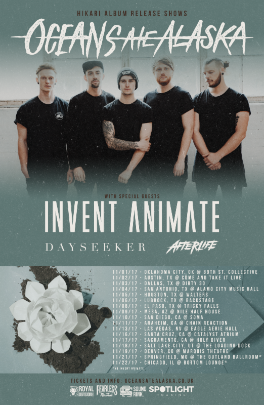 The metalcore band, Oceans Ate Alaska, have announced a fall U.S. headline tour, for November. This tour is in support of their latest album, Hikari. Invent Animate, Dayseeker and Afterlife will be on the tour, as support.