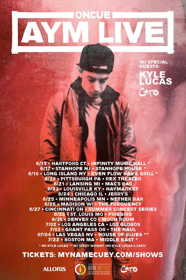 The hip-hop artist, OnCue, has announced a U.S. summer tour, called the “AYM Live Tour.” The tour is in support of his newest album, Angry Young Man. Kyle Lucas and Cato will be on the tour, as support. You can check out the dates, details, and poster, after the break.