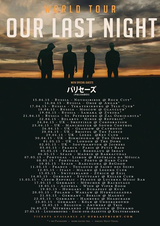The alternative rock band, Our Last Night, has announced a spring world tour with shows in Russia, Europe and the UK. Palisades will be supporting the EU/UK dates. More dates to be announced. You can check out the dates, details and poster, after the break.
