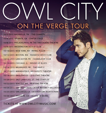 The electronic artist, Owl City, has announced the “On The Verge Tour,” in the United States. This tour will be in support of his new album, Mobile Orchestra. He will be joined by Rozzi Crane, as support. You can check out the dates, details and poster, after the break.