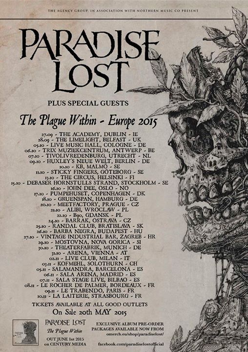 The metal band, Paradise Lost, has announced a headlining European tour, called “The Plague Within European Tour,” for this fall. They will be touring in support of their upcoming album, The Plague Within. You can check out the dates, details and poster, after the break.