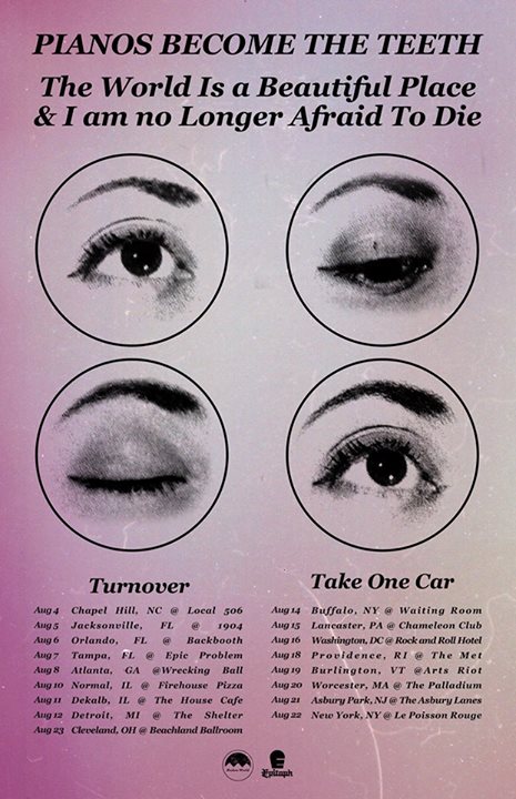 The rock band, Pianos Become The Teeth, has announced a co-headlining U.S. tour with The World Is A Beautiful Place & I Am No Longer Afraid To Die, for August. Turnover and Take One Car will be joining the tour, as support. You can check out the dates, details and poster, after the break.
