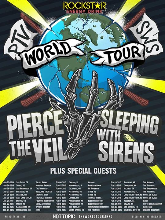 The rock band, Pierce The Veil, have announced a second leg of dates in the United States, for their co-headlining world tour with Sleeping With Sirens. You can check out the dates, details and poster, after the break.