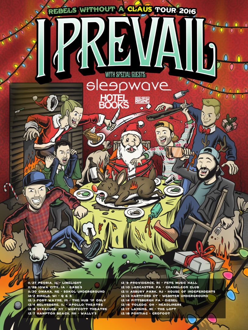 The post-hardcore band, I Prevail, have announced a winter U.S. tour, called the “Rebels Without a Claus Tour,” for November and December. The tour will be in support of their new album, Lifelines. Sleepwave, Hotel Books, and Bad Seed Rising will be joining the tour, as support. You can check out the dates, details and poster, after the break.