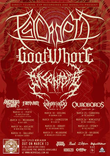The metal band, Psycroptic, have announced an Australian tour, in support of their upcoming self-titled album. Goatwhore, Disentomb, Aversions Crown, Earth Rot, Whoretopsy and Ouroboros! will be joining, on select dates. You can check out the dates, details and poster,…