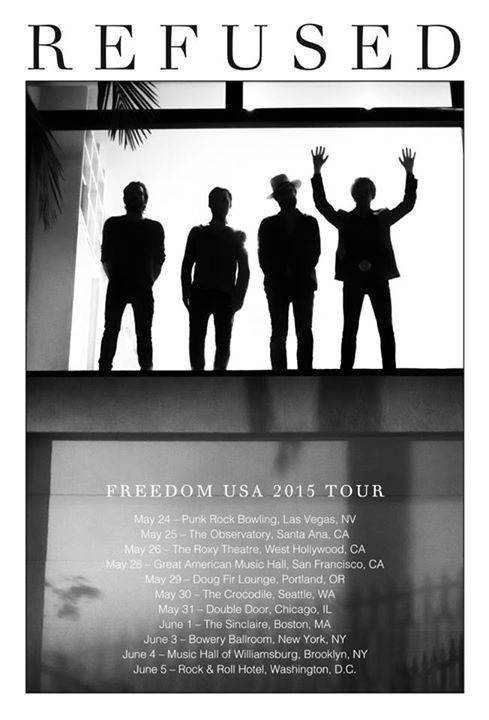 The hardcore punk band, Refused, have announced a U.S. tour, for late spring, called the “Freedom Tour.” The band will also be playing the Punk Rock Bowling Festival, in Las Vegas. You can check out the dates, details and poster, after the break.