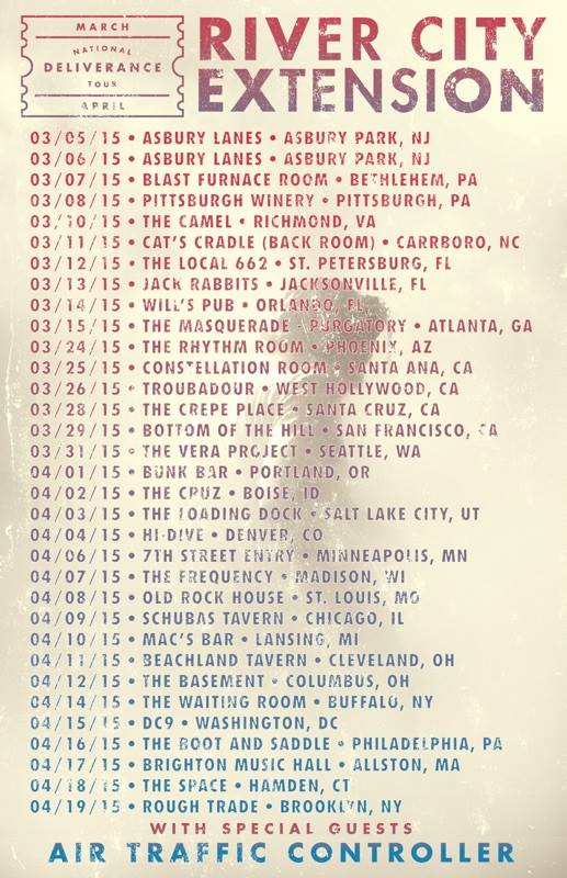 The rock band, River City Extension, has announced a U.S. headline tour, called the “National Deliverance Tour,” for this spring. They will be touring in support of their upcoming album, Deliverance. Air Traffic Controller will be joining the tour, as the special guests. You can check out the dates, details and poster, after the break.