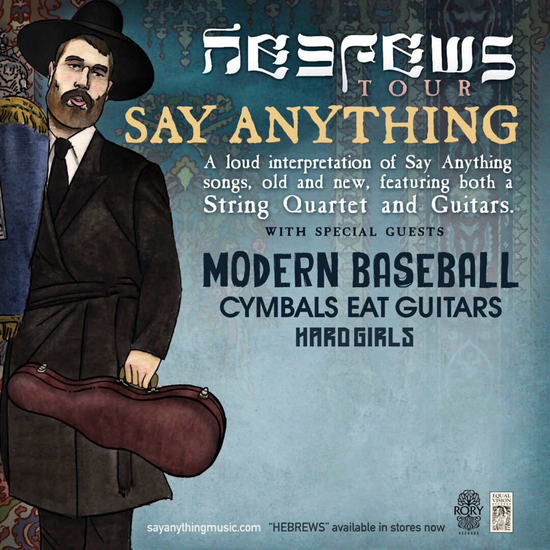 The indie rock band, Say Anything, has announced a North American summer tour, called the “Hebrews Tour.” They will be supported by Modern Baseball, Cymbals Eat Guitars and Hard Girls. You can check out the dates, details and poster, after the break.