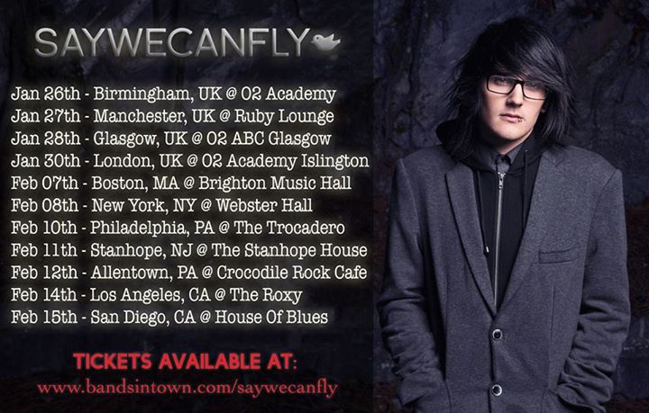 The singer-songwriter, SayWeCanFly, has announced a tour, for January and February. The tour will be hitting cities throughout the UK and the United States. You can check out the dates, details and poster, after the break.