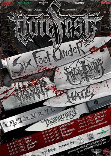 The death metal band, Six Feet Under, have announced that they will be headlining next year’s “HateFest Tour,” in Europe. Supporting the tour will be Marduk, Vader and Hate, as well as Eisregen and Debauchery, on select dates. You can check out the dates, details and poster, after the break.