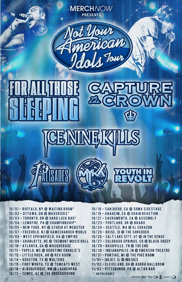 The hardcore band, For All Those Sleeping, have announced that they will be co-headlining the “Not Your American Idols Tour” with Capture The Crown, in the United States this fall. Ice Nine Kills, Youth In Revolt, Palisades and Myka, Relocate…