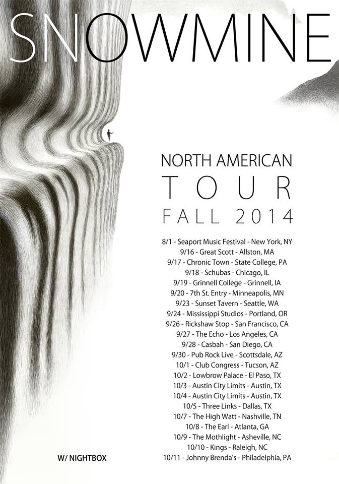 The ambient rock band, Snowmine, will be heading out on their first headlining tour this fall, hitting cities across the United States. They will be bringing Toronto’s Nightbox on the tour, as support. You can check out the dates, details and poster, after the break.