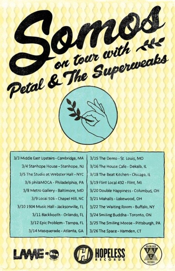 The indie rock band, Somos, have announced a U.S tour, for March. The band will be touring in support of their newest album, First Day Back, available February 19th. Petal and The Superweaks will be on the tour, as support. You can check out dates, details and poster, after the break.