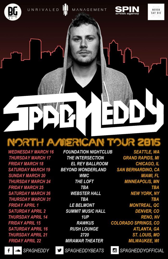 The dubstep artist, Spag Heddy, has announced a 2016 North American tour, for March and April. He will be touring in support of his latest EP, Pastanistan Express. You can check out the dates, details and poster, after the break.