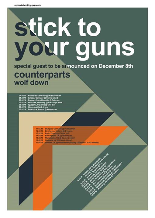 The hardcore punk band, Stick To Your Guns, have announced a European tour, for February. They will be touring in support of their latest album, Disobedient. Counterparts and Wolf Down will be joining the tour, as support. You can check out the dates, details and poster, after the break.