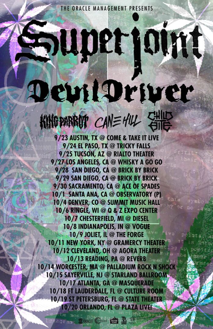 The heavy metal band, Superjoint, has announced a U.S. tour, for September through October. DevilDriver, King Parrot, Cane Hill and Child Bite will be on the tour, as support.