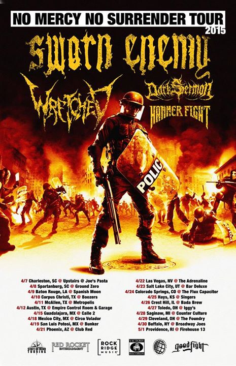 The hardcore metal band, Sworn Enemy, have announced the “No Mercy No Surrender Tour,” with dates in the U.S. and Mexico. Supporting this tour will be Wretched, Dark Sermon and Hammer Fight. You can check out the dates, details and poster, after the break.