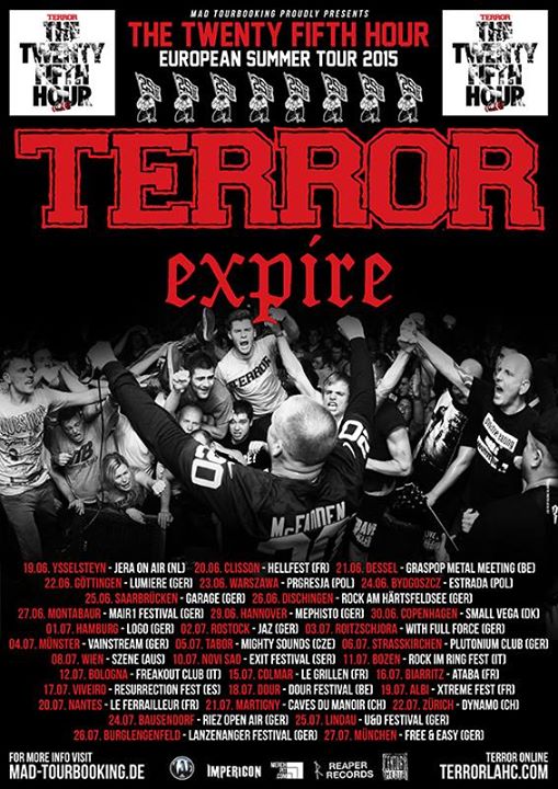 The hardcore band, Terror, have announced that they will be doing a European summer tour with Expire, called the “Twenty Fifth Hour Tour.” You can check out the dates, details and poster, after the break.
