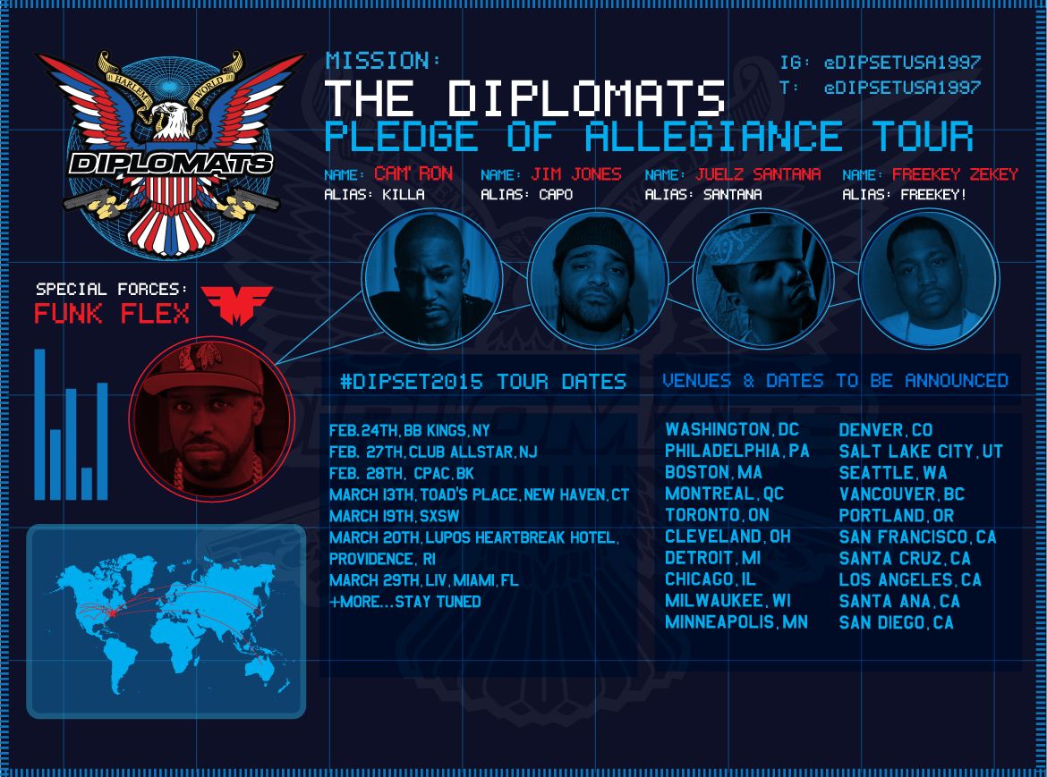 The rap group, The Diplomats (Dipset), have announced the “Pledge Of Allegiance Tour,” with dates in February and March. More dates are to be announced. They will be supported by Funk Flex. You can check out the dates, details and poster, after the break.