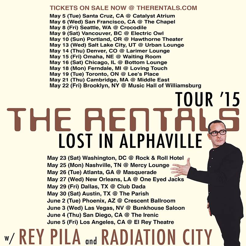 The rock band, The Rentals, have announced a North American tour with Rey Pila and Radiation City, for May and June. You can check out the dates, details and poster, after the break.
