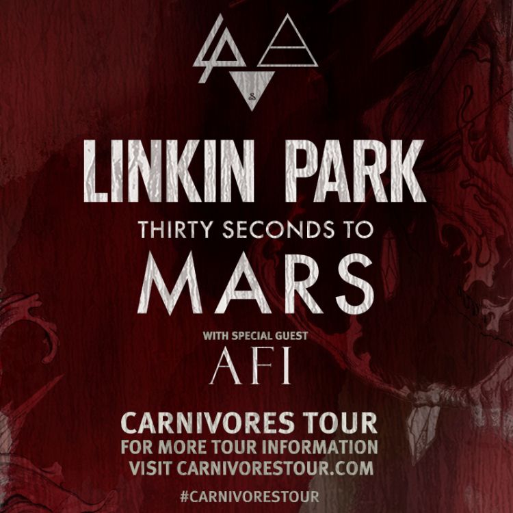 The rock band, Linkin Park, have announced that they’ll be co-headlining the “Carnivores Tour” with Thirty Seconds To Mars, and special guests AFI, hitting amphitheaters across North America, in August and September. You can check out the dates, poster and details, after the break.