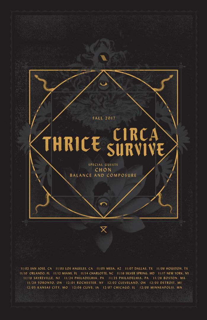 The post-hardcore band, Thrice, have announced a co-headlining U.S tour with Circa Survive, for November and December. CHON and Balance and Composure will join the tour, as support. You can check out the dates, details and poster, after the break.