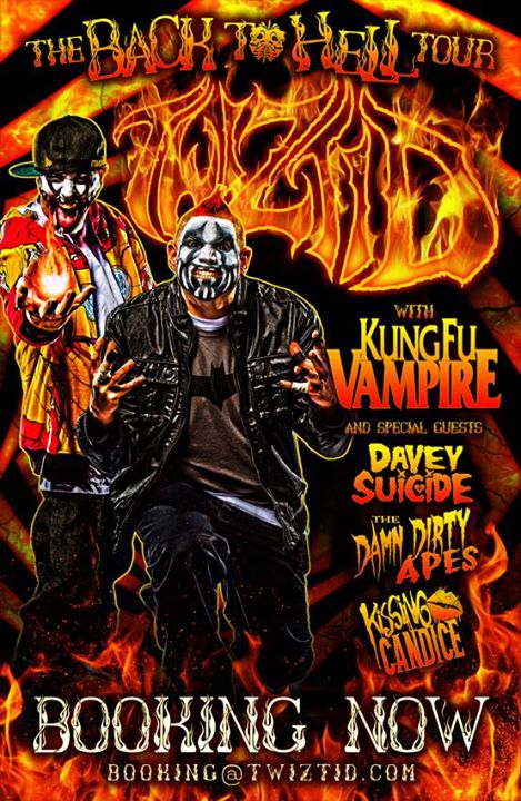 The wicked hip-hop duo, Twiztid, has announced “The Back to Hell Tour,” for this spring. The tour will be supported by Kung Fu Vampire, Davey Suicide, The Damn Dirty Apes and Kissing Candice. Dates are currently being booked. You can check out the details and poster, after the break.