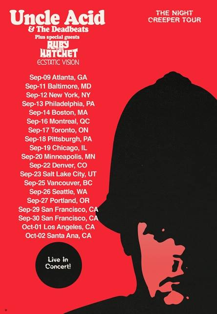 The psychedelic rock band, Uncle Acid & The Deadbeats, have announced a headlining North American tour, called “The Night Creeper Tour,” for this fall. They will be touring in support of their upcoming album, The Night Creeper. Ruby The Hatchet…