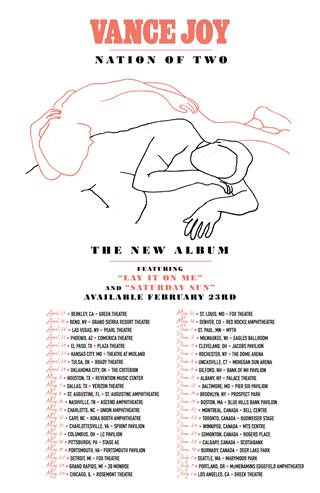The folk pop artist, Vance Joy, has announced a North American tour, called the “Nation of Two Tour”, for April through July.